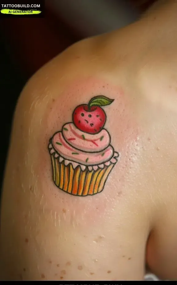 A cute cupcake tattoo can represent sweetness, celebration, and indulgence. This playful design can be personalized with different colors and details, making it a fun and charming choice.