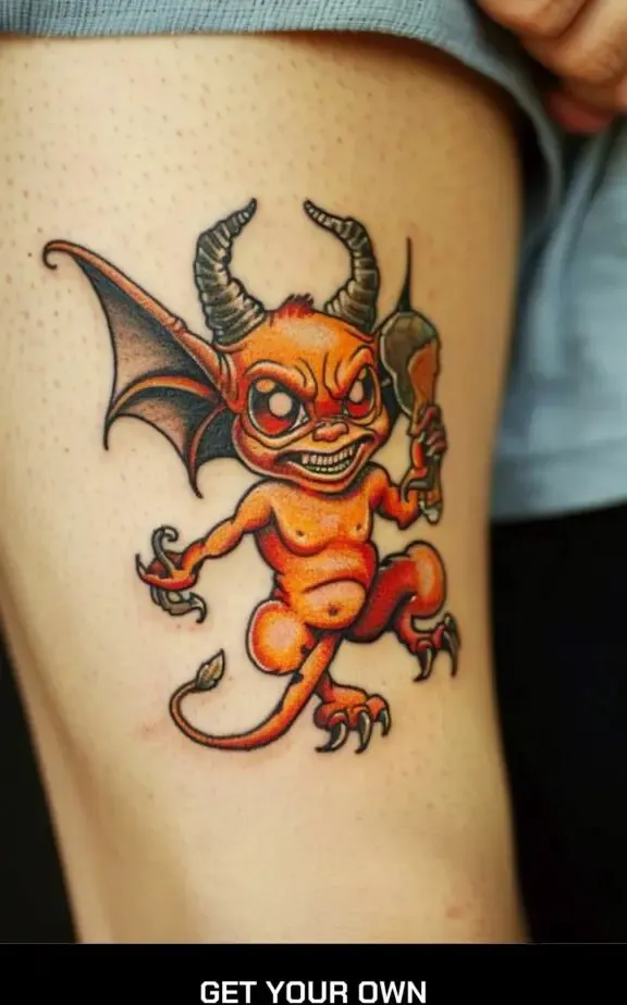For those who want to embrace their dark side with a touch of whimsy, a cute demon tattoo can be a fun and unique choice. This design blends demonic elements with playful and charming features.
