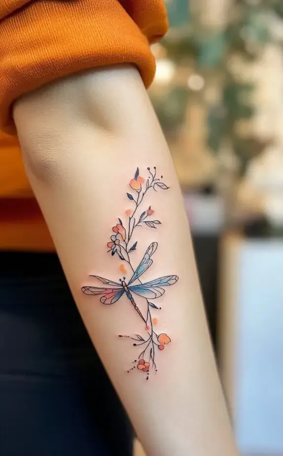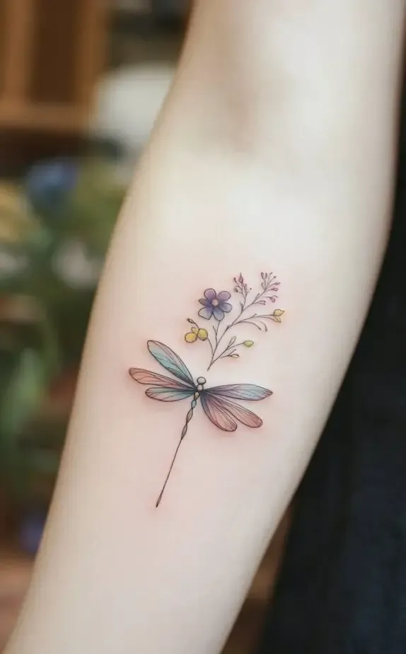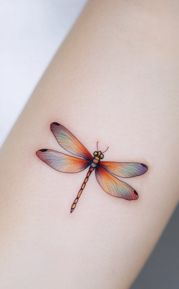 Dragonflies come in a wide range of colors, from iridescent blues and greens to fiery reds and oranges. This natural color palette allows for vibrant and eye-catching tattoo designs. Whether you choose to stick to realistic colors or experiment with bold, imaginative hues, a dragonfly tattoo can be as colorful and dynamic as you desire.