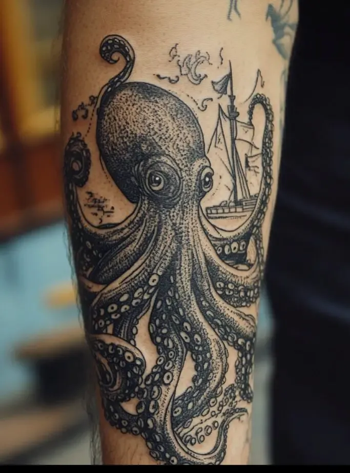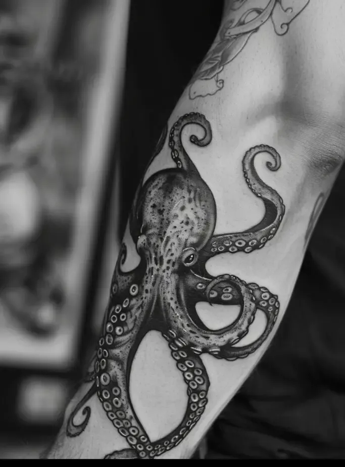 The octopus has a mystical quality due to its alien-like appearance and behaviors. It is often associated with the supernatural, mythological beings, and ancient sea gods. For some, an octopus tattoo represents a connection to the mystical or a fascination with the otherworldly.