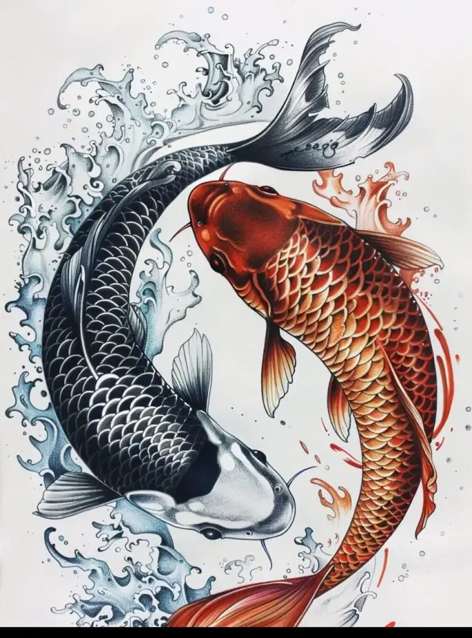 Koi fish tattoos come in a variety of styles and designs, each reflecting different aspects of their symbolism and the personal tastes of the wearer. Here are some popular design variations: