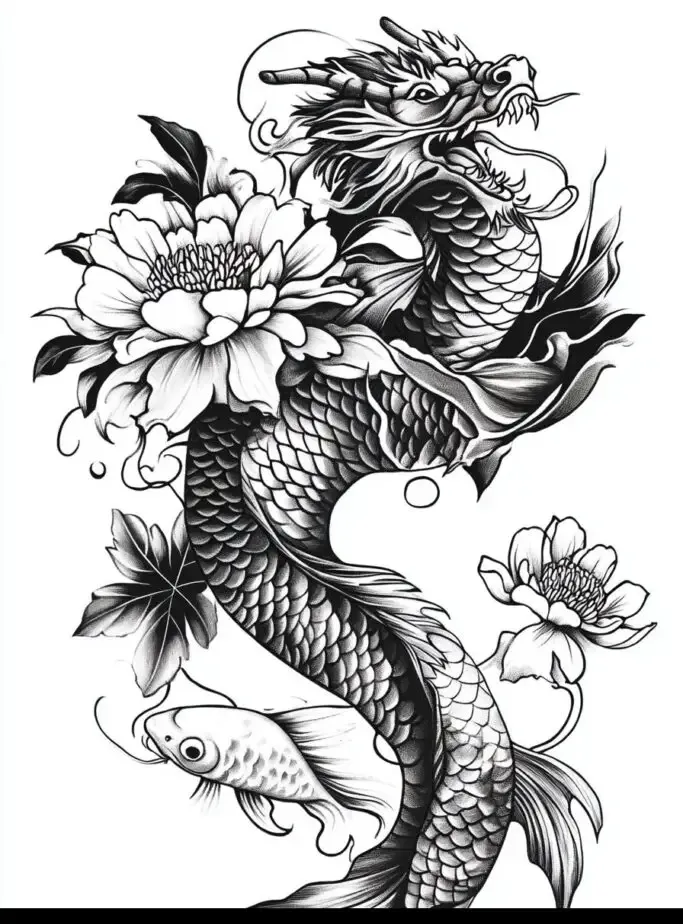 Adding a dragon to a koi fish tattoo design can amplify the theme of transformation. Since the koi fish is said to become a dragon after overcoming obstacles, this combination represents the ultimate achievement of personal growth.
