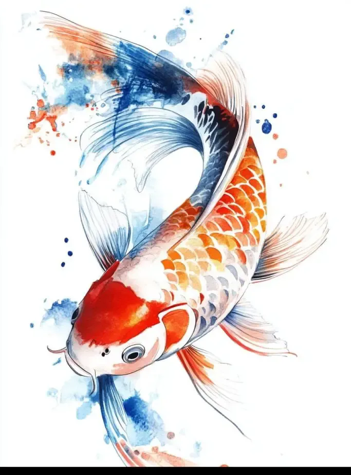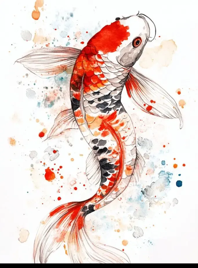 Watercolor tattoos mimic the appearance of watercolor paintings, with splashes of vibrant color and fluid shapes. This style adds a contemporary and artistic twist to the traditional koi fish tattoo, creating a dynamic and visually appealing design.