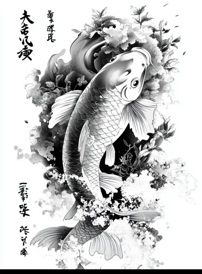 Including Japanese kanji characters or symbols can add an extra layer of meaning to the tattoo. These can represent values like strength, courage, or success, aligning with the symbolism of the koi fish.