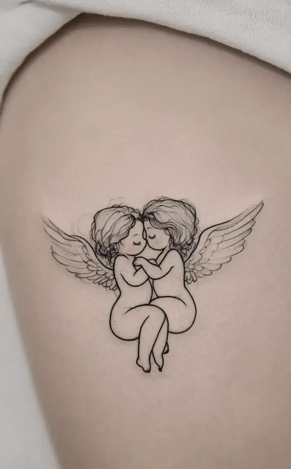 Thigh: Thigh tattoos are a popular choice for women seeking a larger canvas with a bit of discretion. A thigh tattoo can accommodate detailed angel designs, and it offers the flexibility to be shown off when desired. The natural curve of the thigh enhances the visual flow of the design, making it a great choice for angel figures or wings.