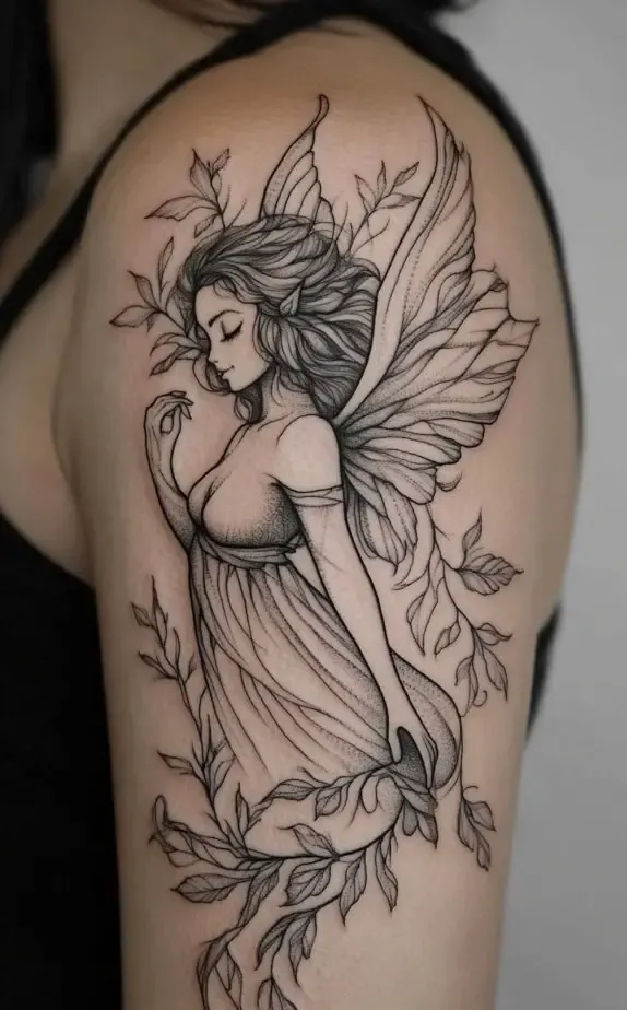 Fallen angels, often portrayed with dark, somber tones and tattered wings, are an evocative design that represents loss, inner turmoil, or the struggle between good and evil. For those who connect with the concept of redemption or resilience, a fallen angel tattoo can symbolize the journey through difficult times and the strength to rise again. This design is typically done in black and gray shading, lending a dramatic and introspective look to the tattoo.