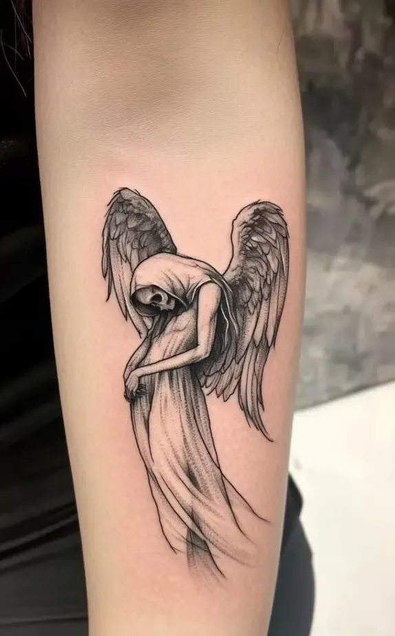 Forearm and Wrist: For those who want a smaller, more visible tattoo, the forearm and wrist are ideal locations. These areas work well for minimalist angel designs, small wings, or simple linework. Forearm tattoos are easy to see, serving as a daily reminder of the tattoo s meaning.
