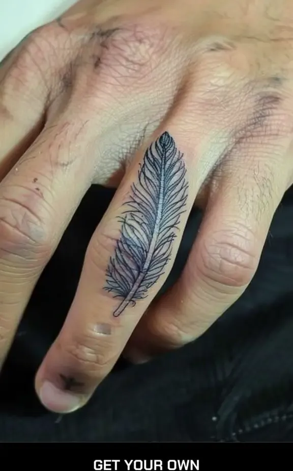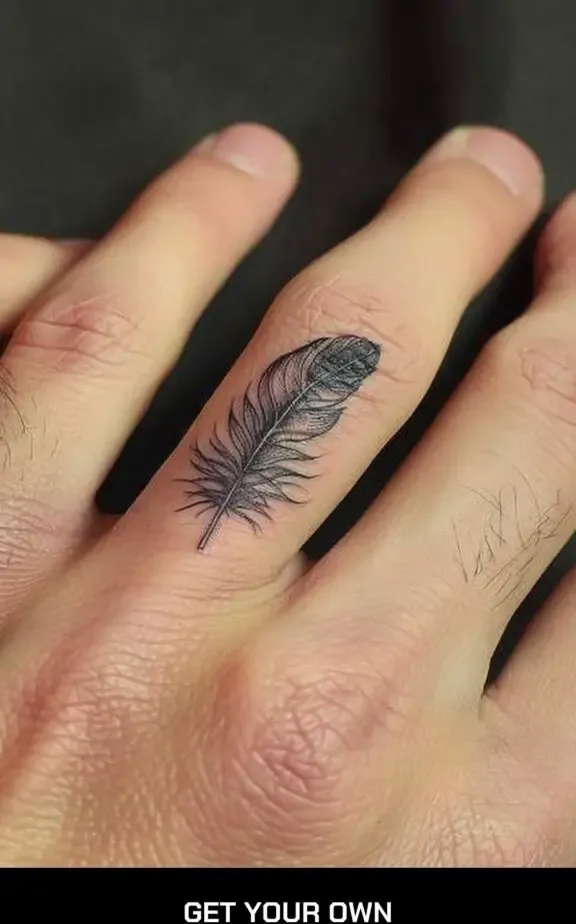 A small feather tattoo can represent lightness and grace. This design works well on the side of the finger or wrapped around it.