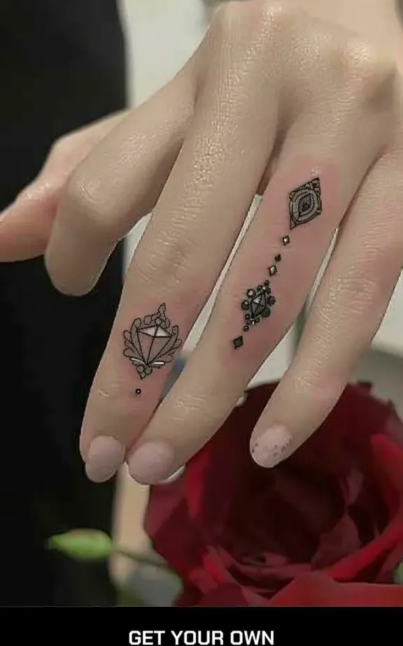 Tattooing small gemstone designs, like diamonds or emeralds, adds a touch of sparkle and elegance. These tattoos can mimic actual rings.