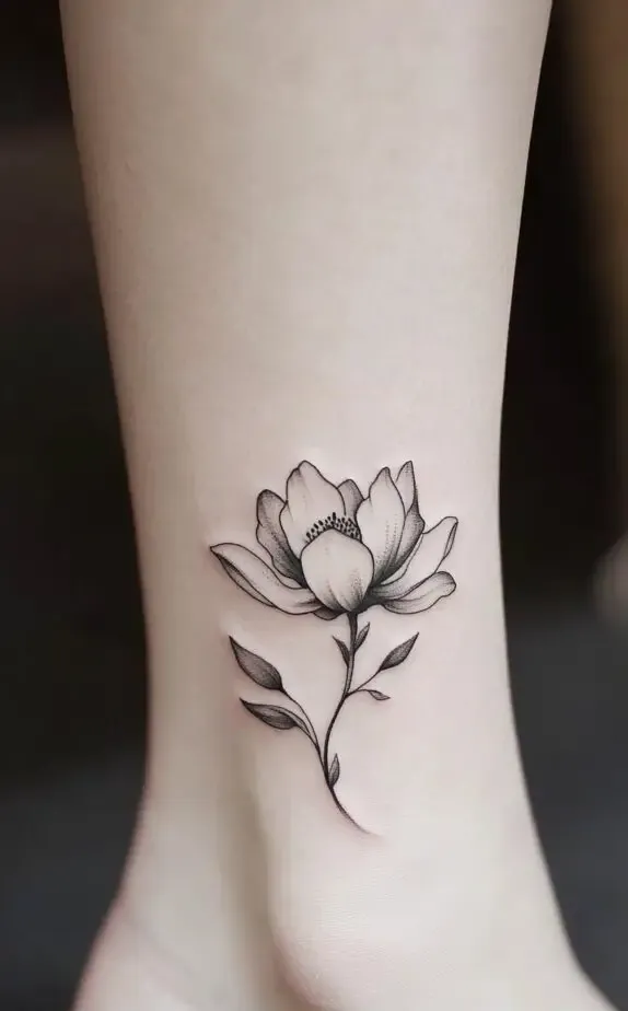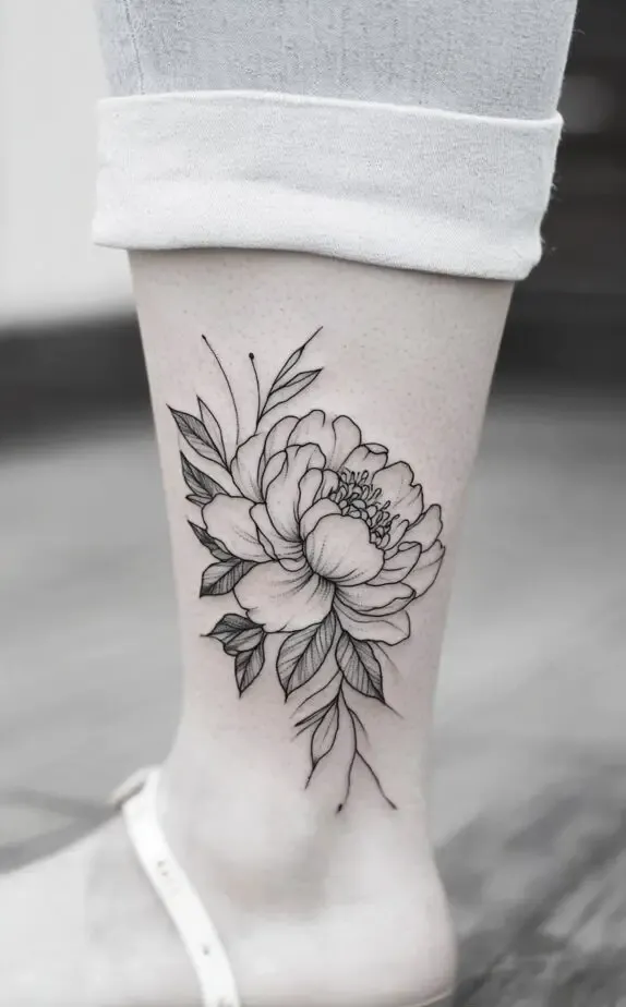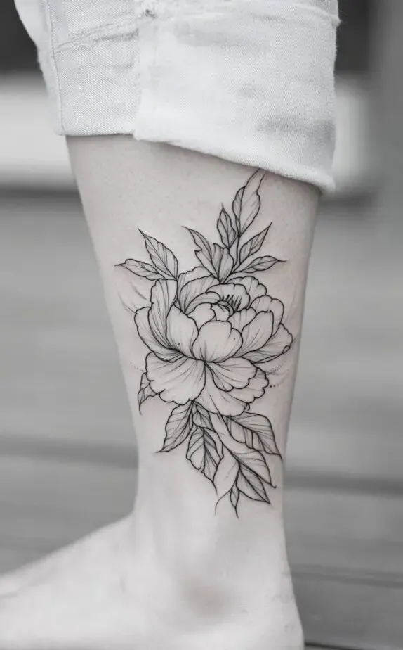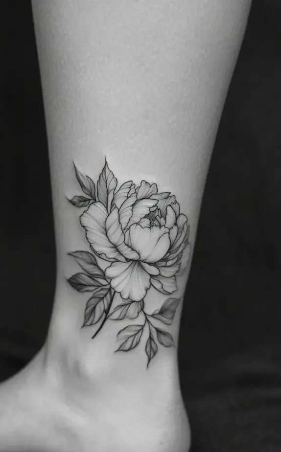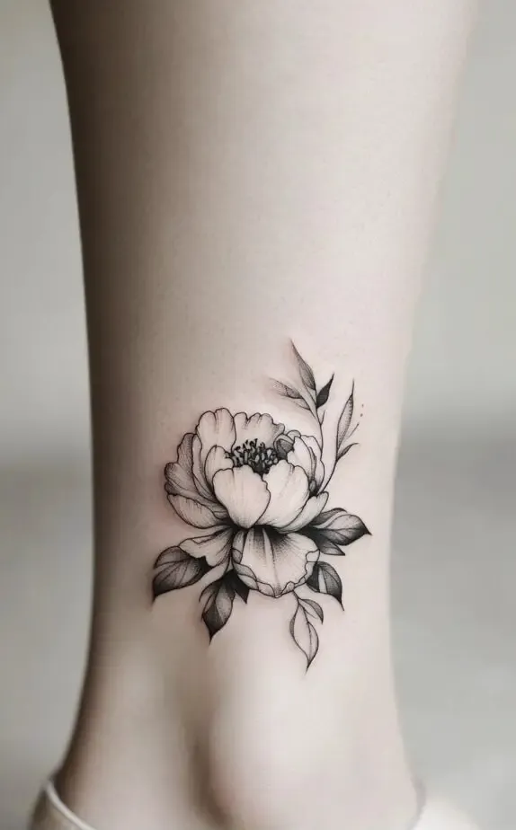 Peonies are lush, full flowers that symbolize prosperity, beauty, and good fortune. In some cultures, they are also associated with romance and love. A peony ankle tattoo is a luxurious and detailed design that exudes elegance and femininity.