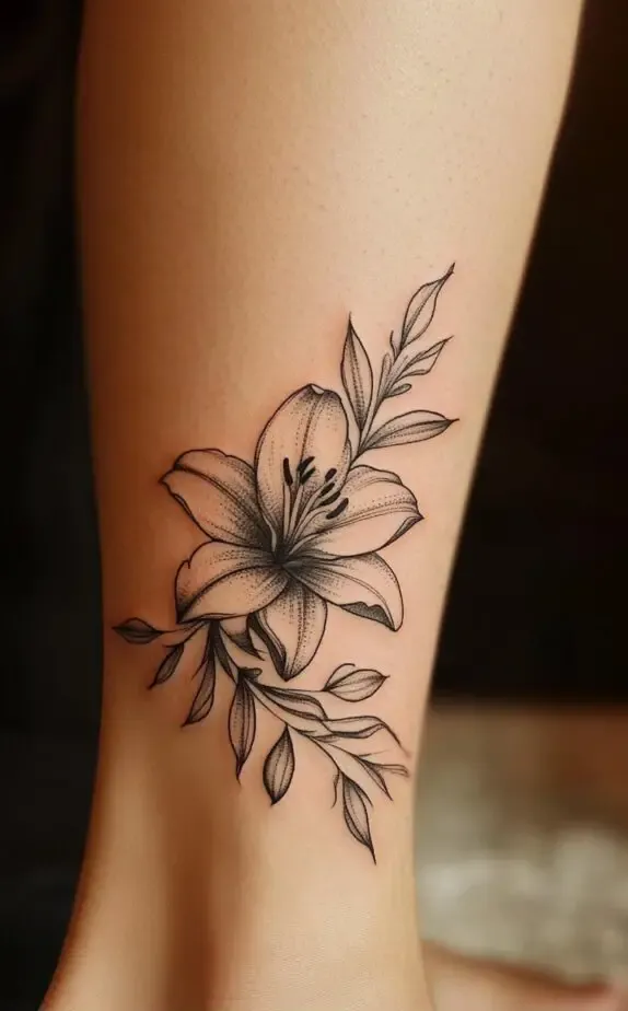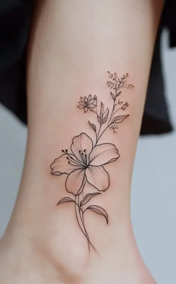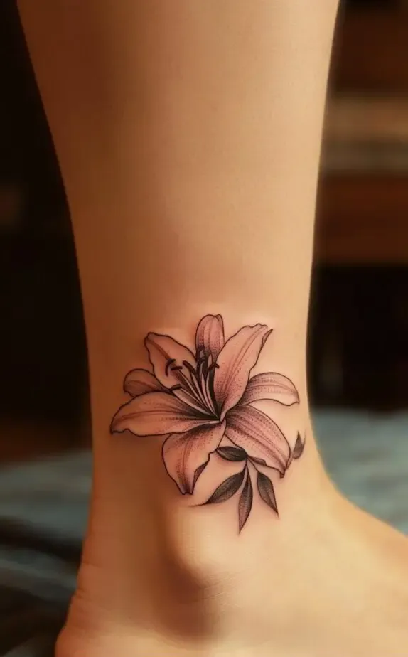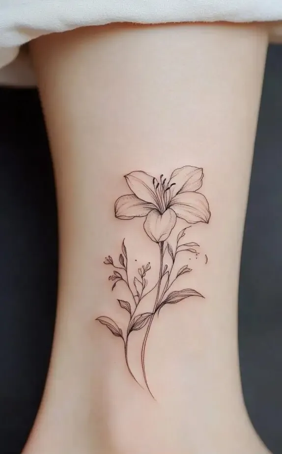 Lilies are known for their association with purity, devotion, and renewal. In some cultures, they are also linked to motherhood and femininity. A lily ankle tattoo can represent beauty, grace, and the importance of new beginnings.