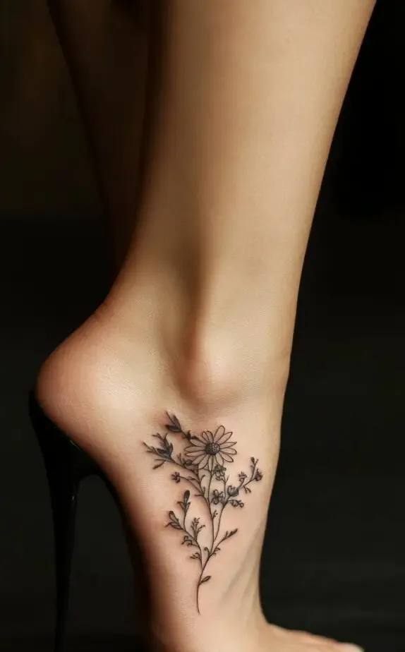 A daisy tattoo on the ankle can be designed in a minimalist style with fine lines or detailed shading to add depth and texture. Its unassuming beauty makes it a versatile choice for anyone seeking a flower tattoo with a lighthearted, innocent charm.
