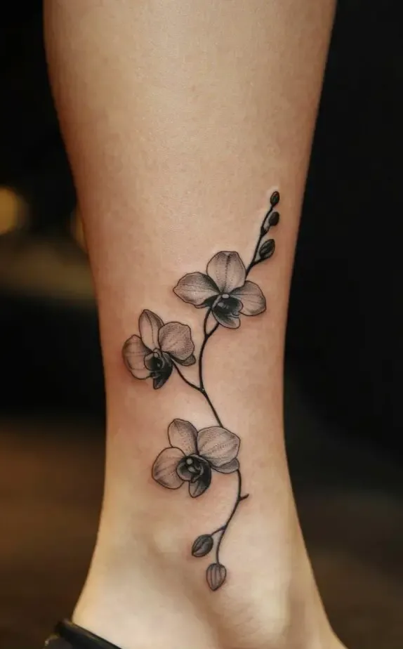 The intricate structure of the orchid flower allows for detailed and delicate designs that are both feminine and bold. The combination of soft petals and striking shapes makes an orchid ankle tattoo a unique and meaningful choice.