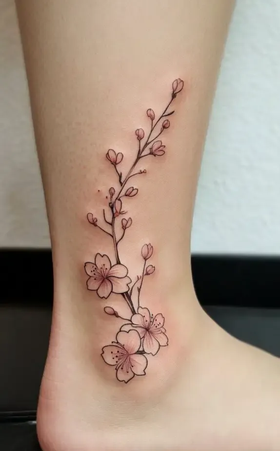 Cherry blossoms are a symbol of fleeting beauty and the transient nature of life. In Japanese culture, they represent the concept of mono no aware the awareness of the impermanence of things. A cherry blossom tattoo on the ankle can serve as a reminder to cherish each moment and find beauty in the ephemeral.
