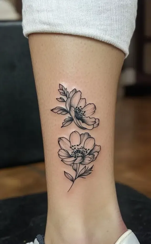 The size of your tattoo will depend on the level of detail you want and the specific flower you choose. A single bloom or a small cluster of flowers can create a delicate and understated look, while a larger design that wraps around the ankle can make a bold statement.