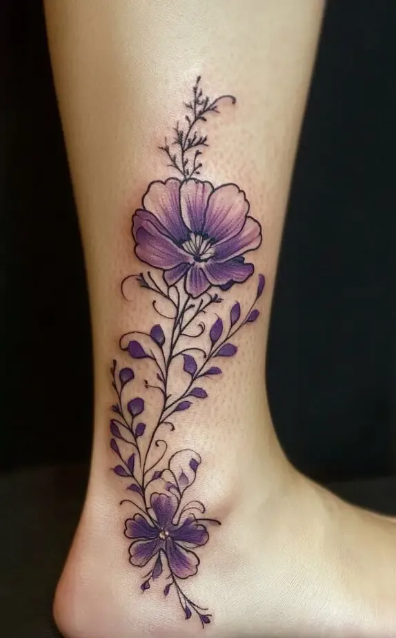 Flower tattoos, including those on the ankle, often carry cultural significance. In many traditions, flowers are more than just decorative elements they are imbued with meaning and history. For example: