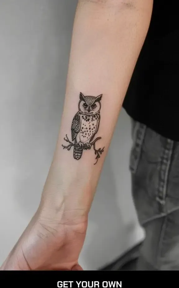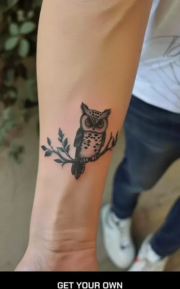 Owls symbolize wisdom and mystery. An owl perched on a branch can be beautifully detailed, adding a touch of nature and intrigue to the forearm.