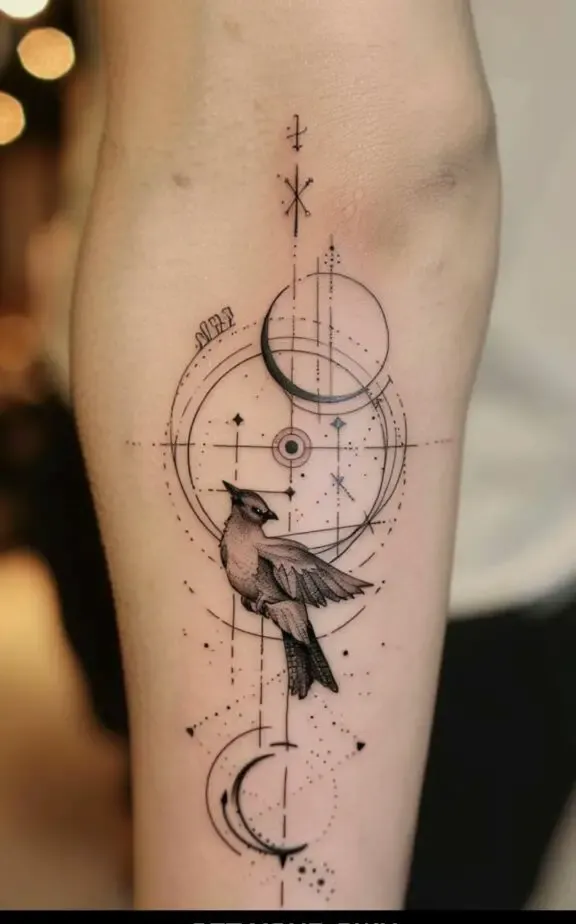 Birds symbolize freedom and communication, aligning well with Gemini traits. A tattoo of twin birds or birds incorporated with the Gemini glyph can be both symbolic and visually appealing. This design works well on the shoulder, back, or forearm.