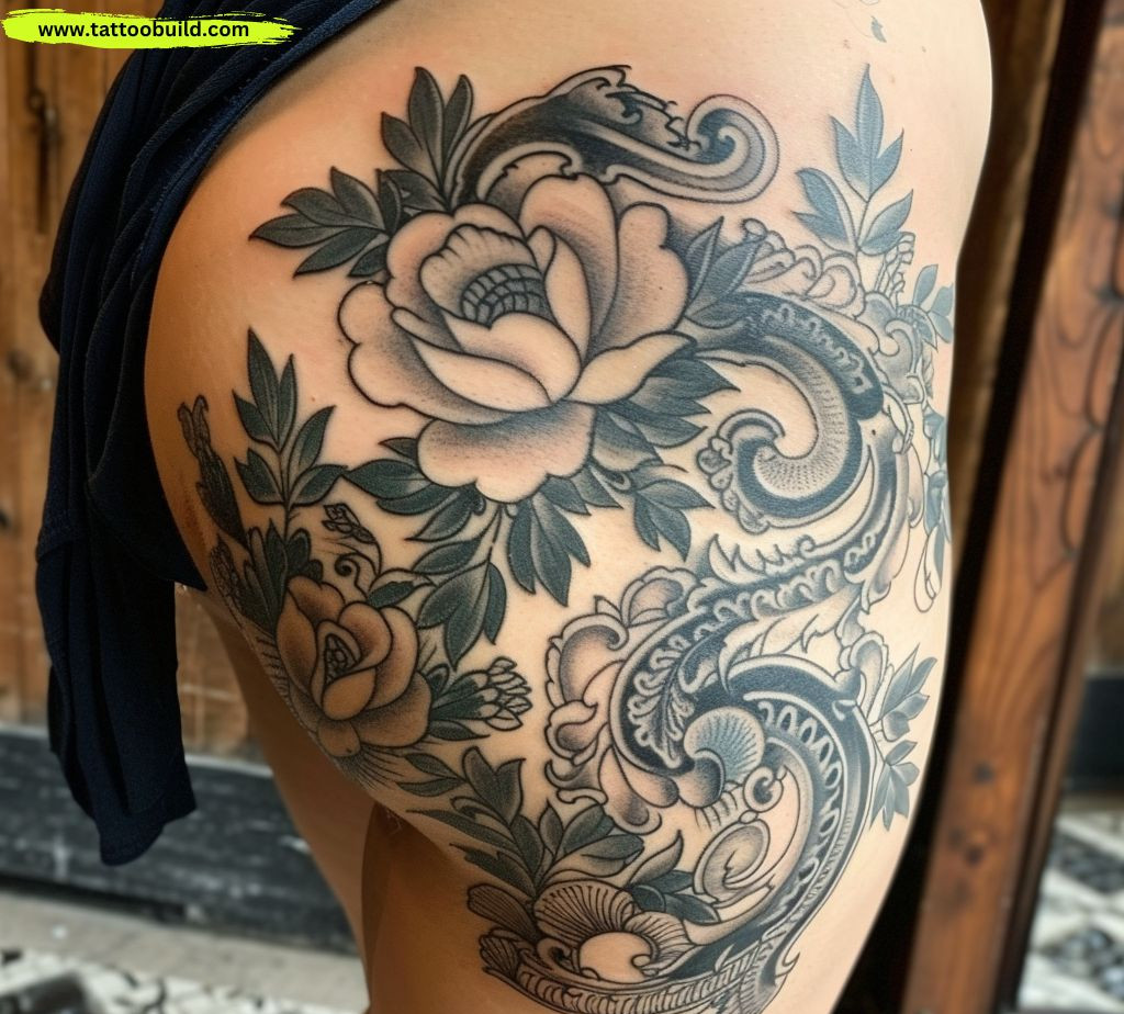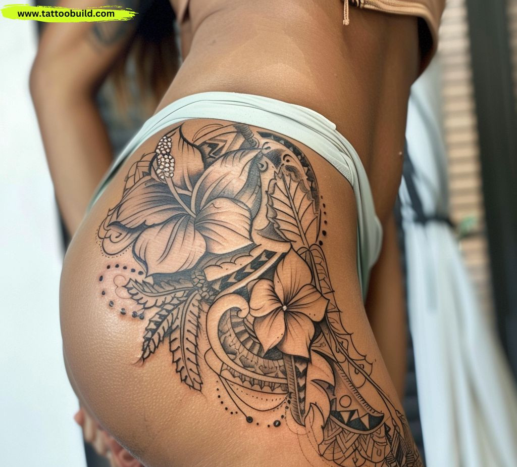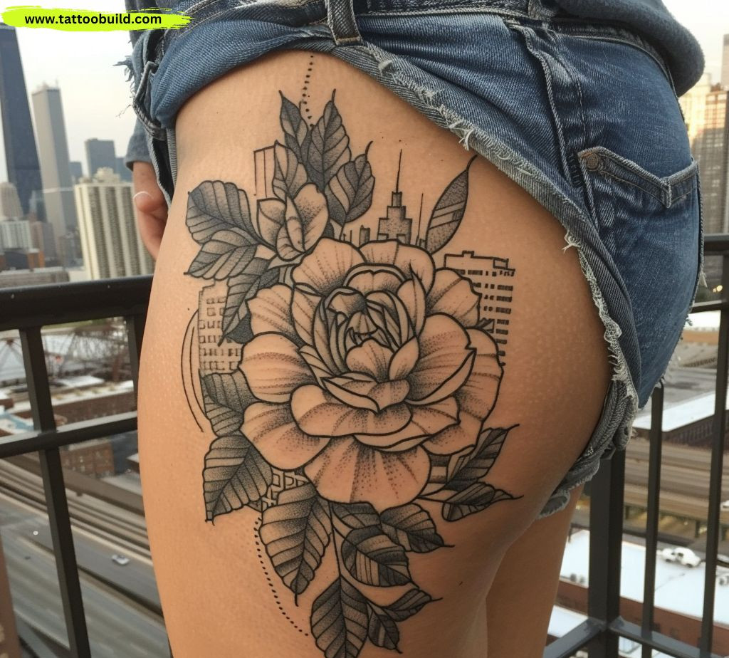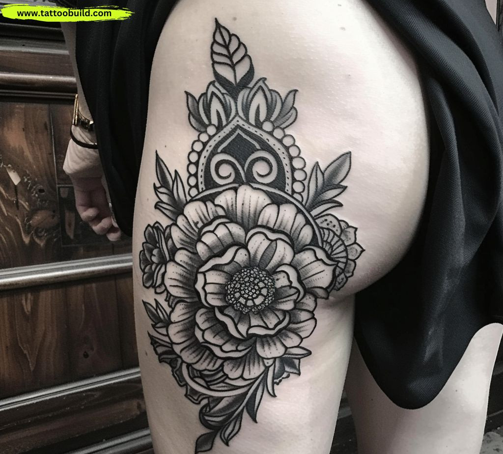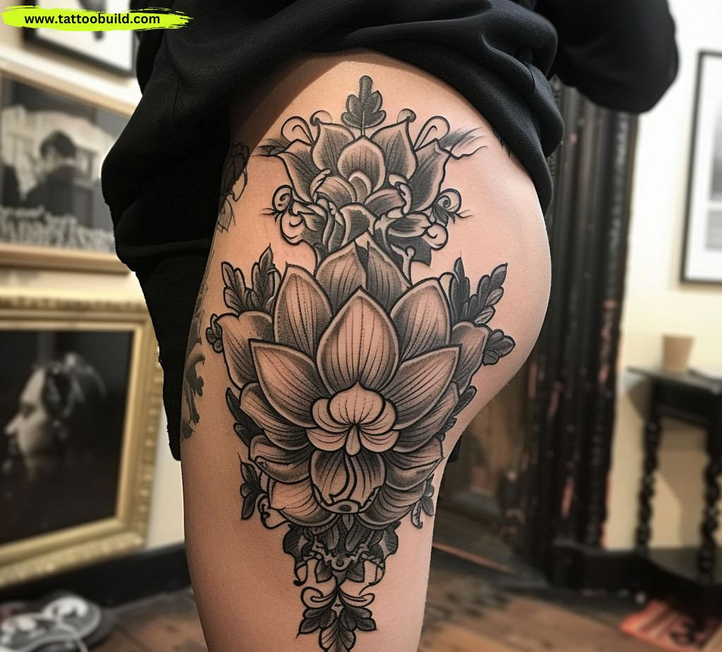 Extending a design from the hip to the upper thigh can create a cohesive and visually appealing tattoo. This placement allows for a natural flow of the design and can be particularly striking with geometric or floral patterns.