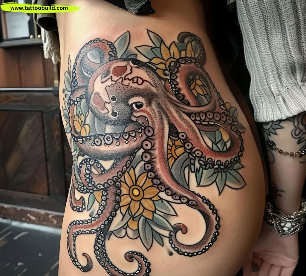 Animal tattoos can symbolize various traits and characteristics. The hip is an excellent canvas for depicting animals with significant personal meaning.