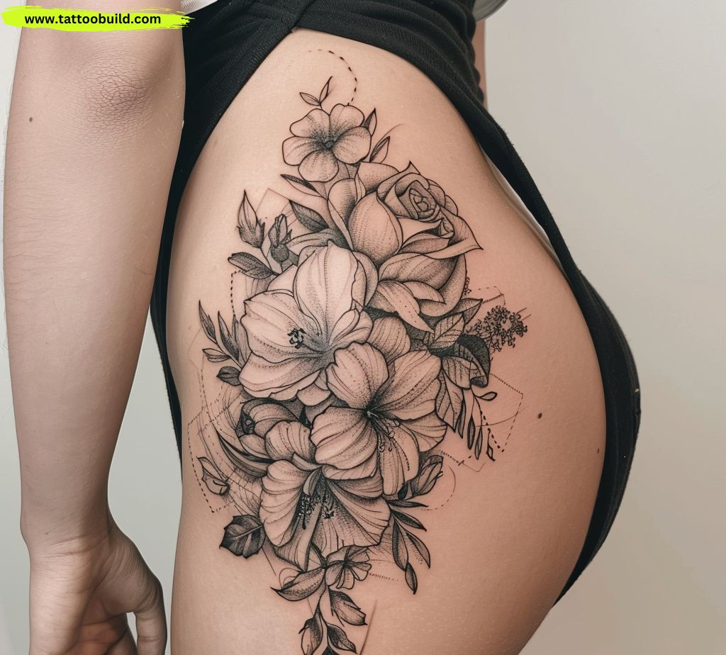are timeless and versatile, making them a popular choice for hip tattoos. Each flower carries its own meaning, allowing for a highly personalized design.