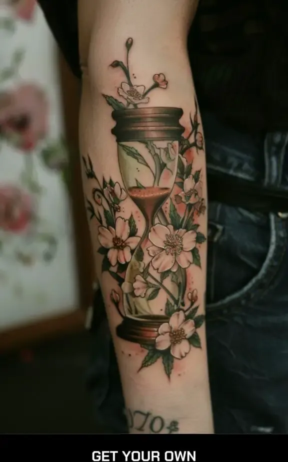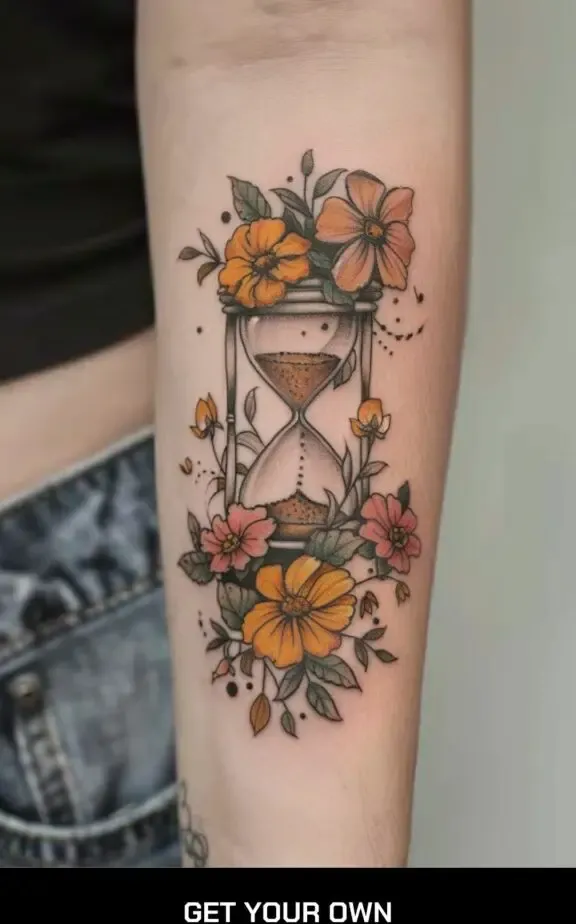 A floral hourglass tattoo combines the symbolism of time with the beauty and fragility of nature. Flowers can represent growth, life, and renewal, making this design a poignant reminder of life s cycles.