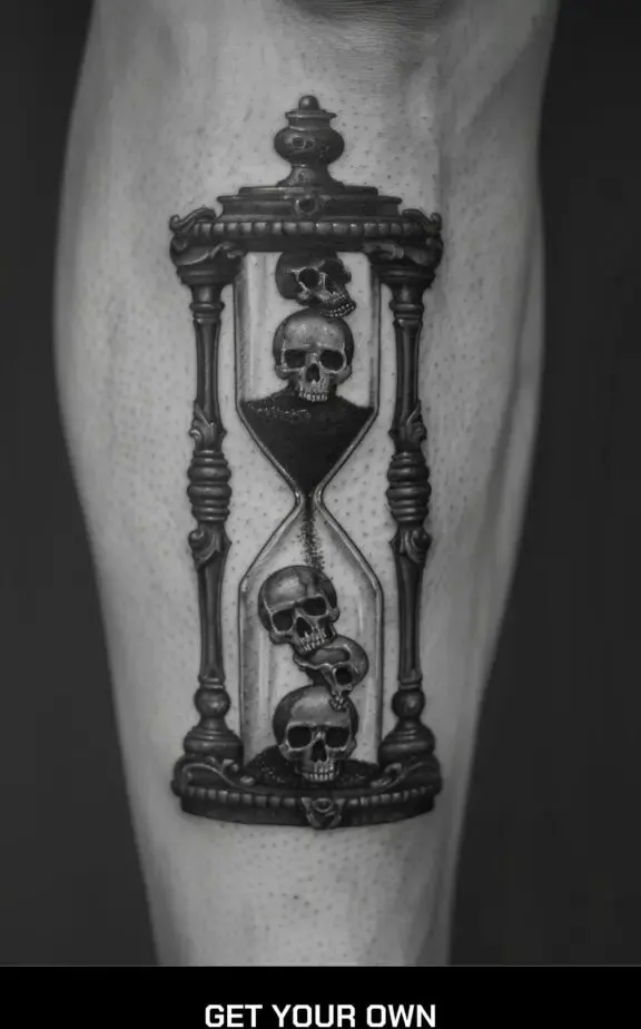 A classic hourglass tattoo is a timeless choice, often depicted with intricate details that highlight its antique design. This tattoo can symbolize the constant flow of time and remind the wearer to cherish every moment.