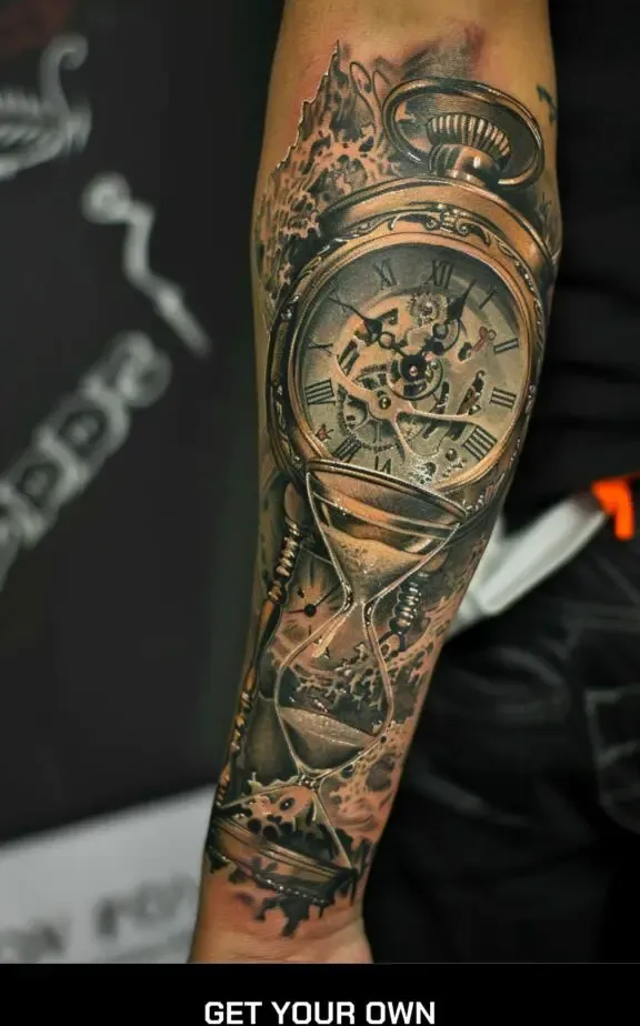 - A half-hourglass, half-clock tattoo, showing the contrast between natural and man-made timekeeping.