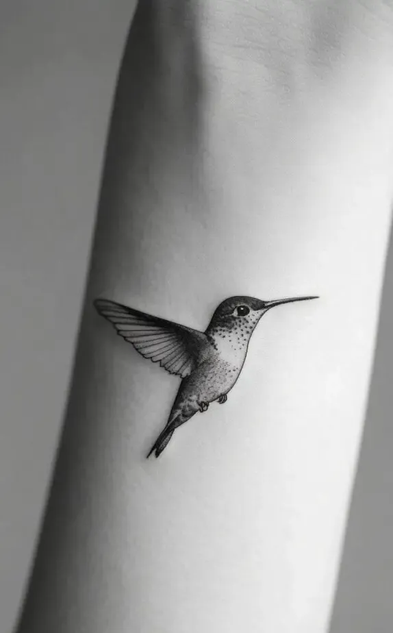 Minimalist designs use clean lines and subtle details to create an elegant, understated look. A small outline or silhouette of a hummingbird is perfect for women who prefer a subtle tattoo that carries deep meaning. These designs often focus on the bird s unique shape, highlighting its wings, beak, and graceful posture. Minimalist tattoos work well on areas like the wrist, ankle, or collarbone.