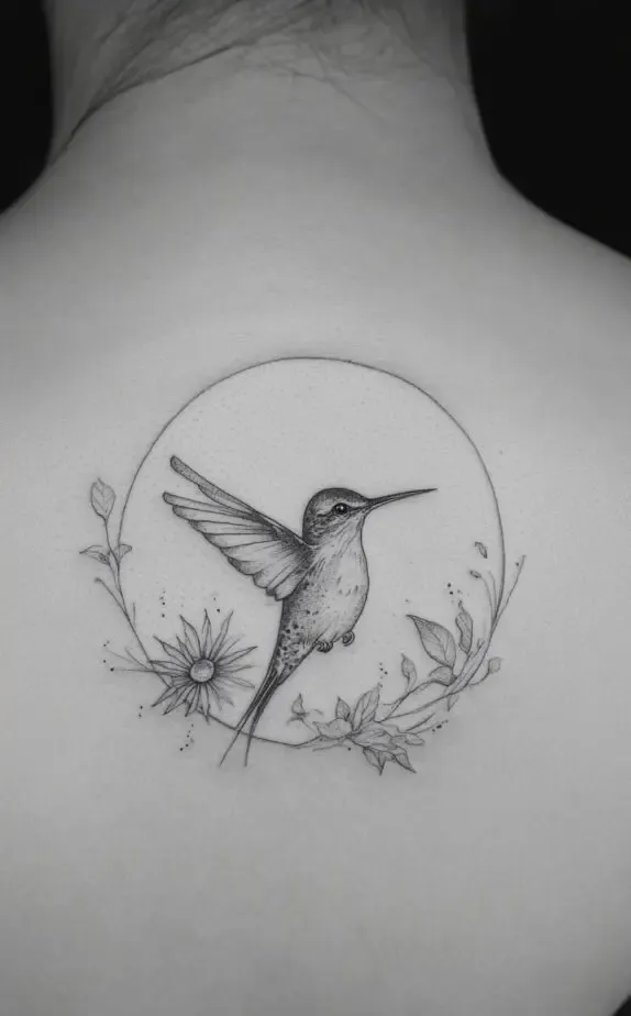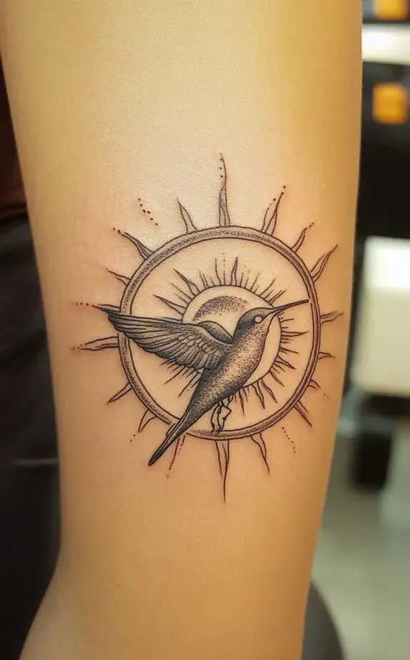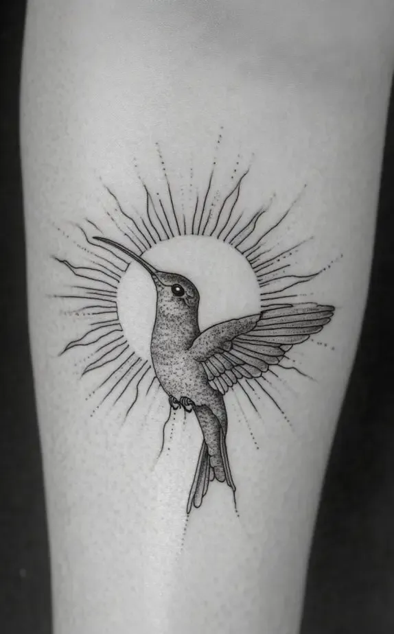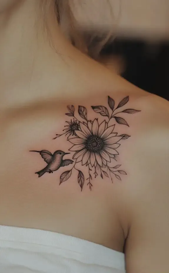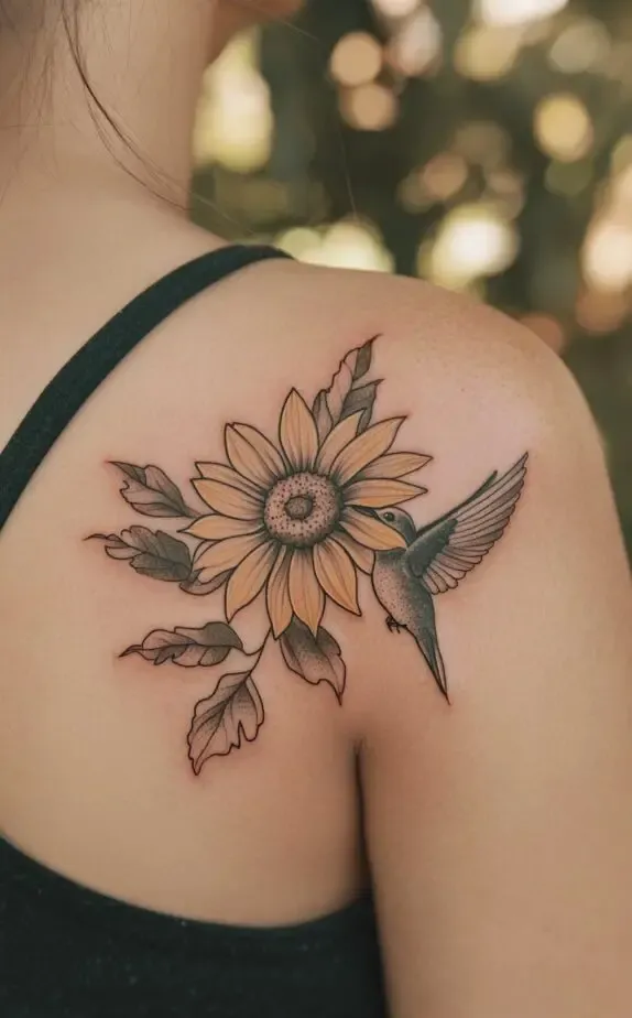A unique combination of a hummingbird and a sunflower, this tattoo symbolizes happiness and optimism.