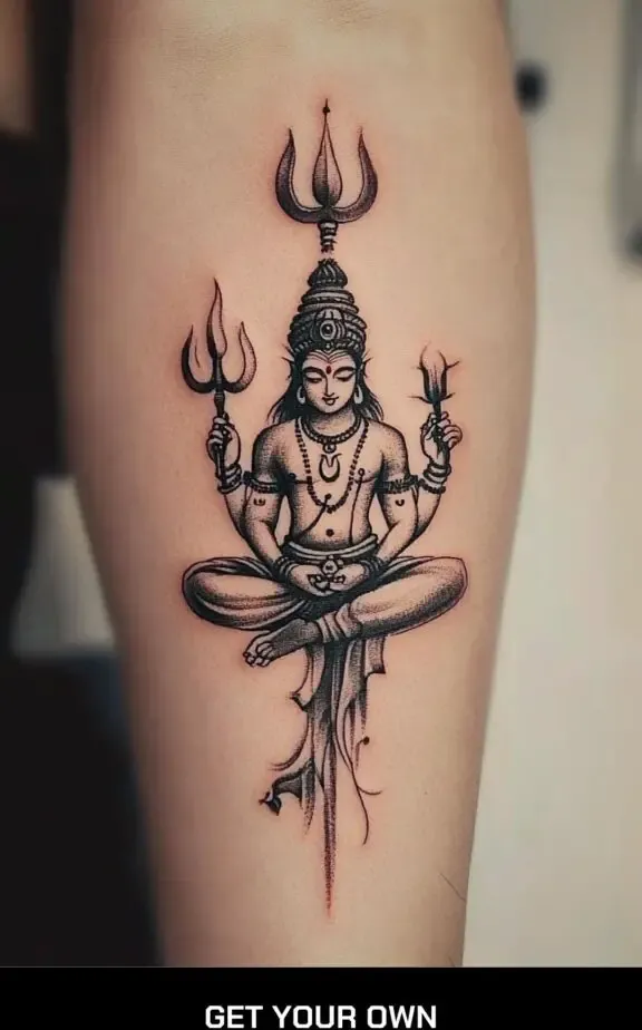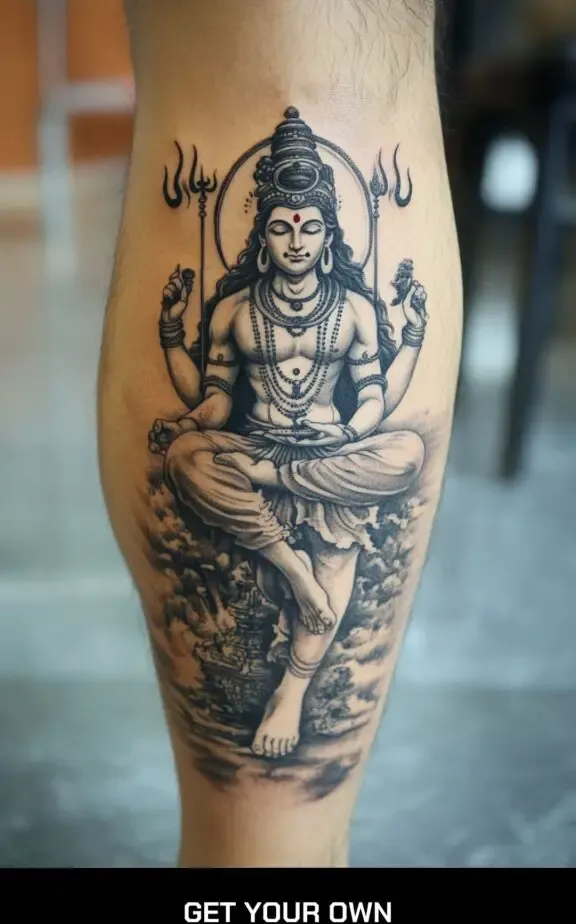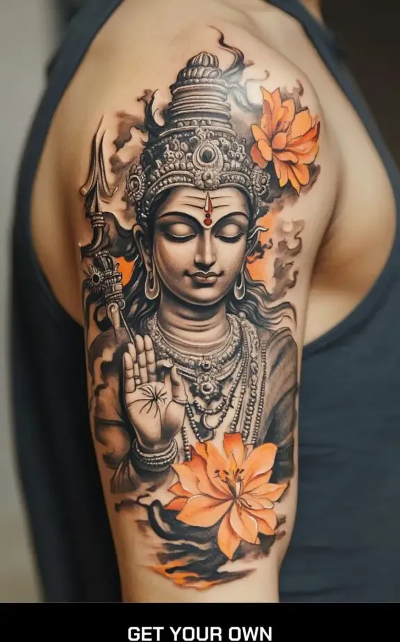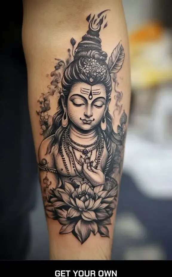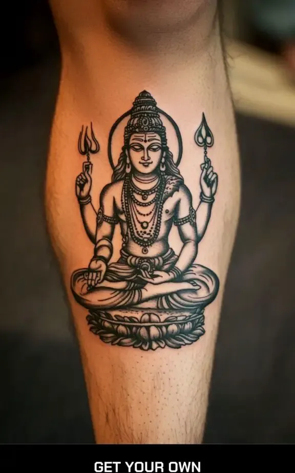 Combining Shiva with floral elements can symbolize the balance between strength and beauty. A tattoo of Shiva surrounded by lotus flowers, which symbolize purity and spiritual awakening, can be a harmonious and visually appealing design.