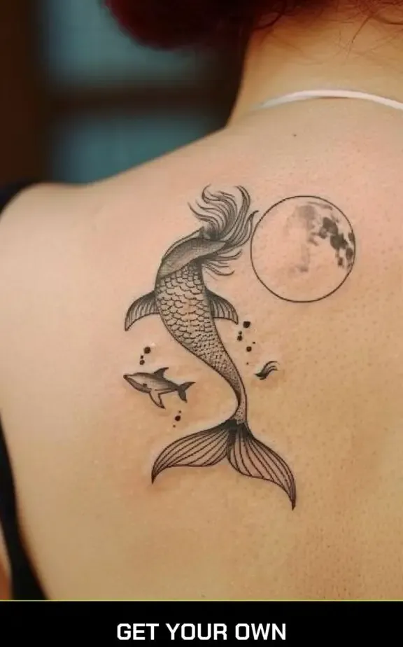 A mermaid and moon tattoo combines two mystical elements, representing the connection between the sea and the night sky. The moon can symbolize intuition, dreams, and the subconscious, adding depth and mystery to the design.