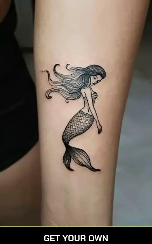 A minimalist mermaid tattoo focuses on clean lines and simple designs. This style is perfect for those who prefer subtle and understated tattoos. A minimalist mermaid can be small and delicate, making it an ideal choice for a discreet placement.