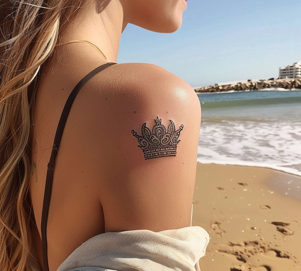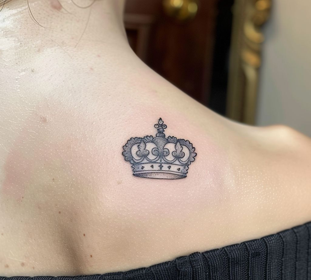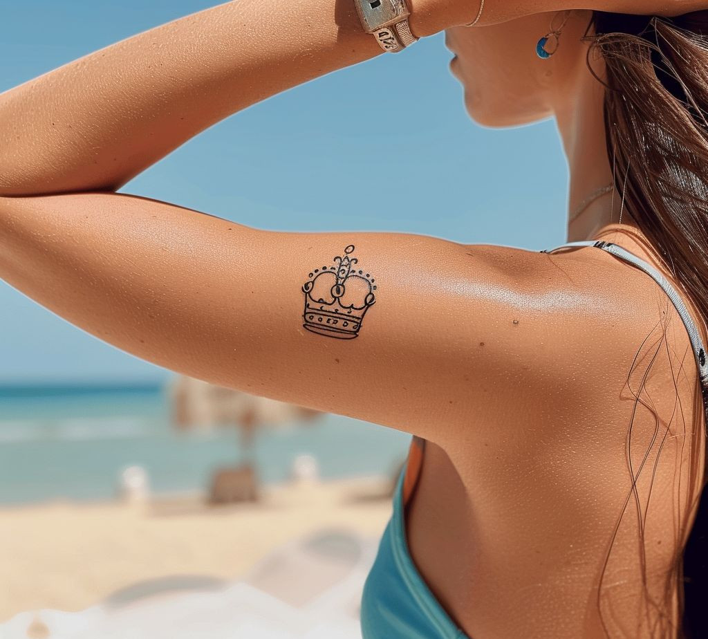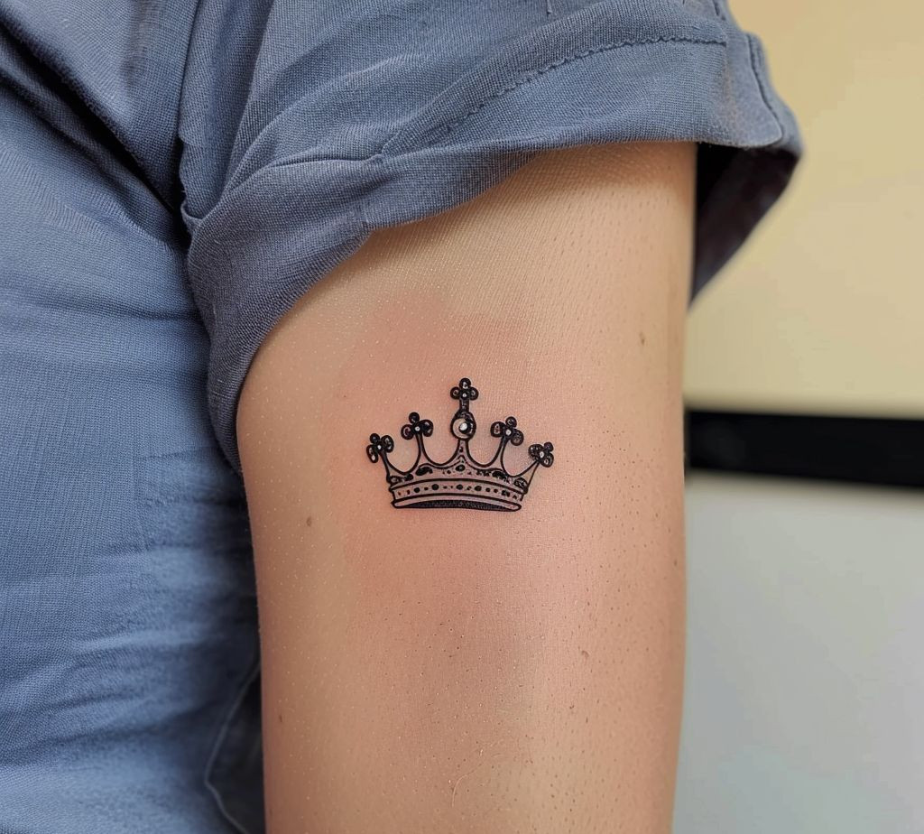 A minimal crown tattoo, because it is small and simple, typically involves less time tattooing compared to larger or more complex designs.