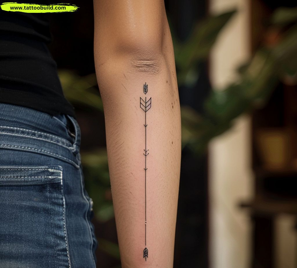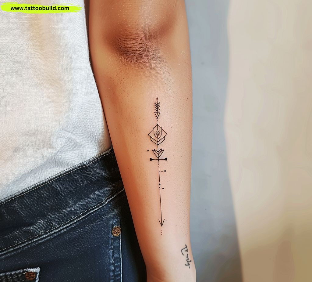 A minimalist arrow on the forearm can be a bold yet elegant statement. This placement allows for a slightly larger design that can incorporate additional elements like geometric shapes or subtle line work.