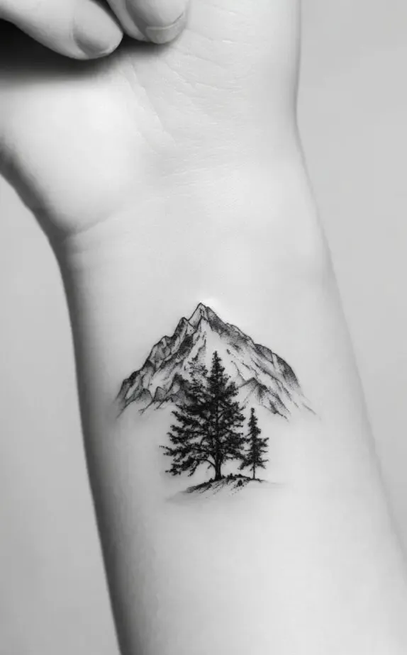 Minimalist mountain and tree tattoos are ideal for those who want a small, discreet design that holds deep meaning. The simplicity of these tattoos makes them versatile and easy to place on different parts of the body. Despite their minimalism, they still convey the core themes of strength, growth, and a connection to nature.