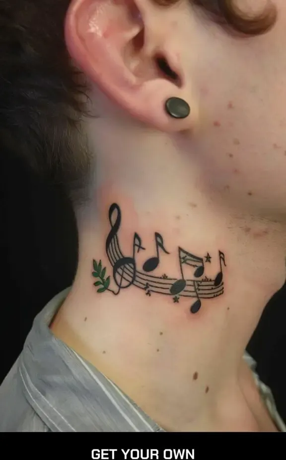 music note neck tattoo