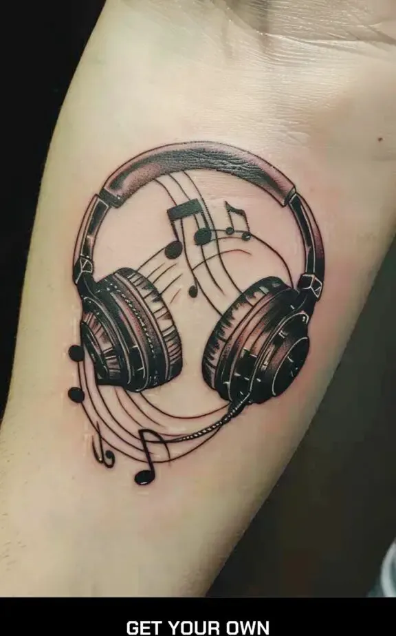 2. Headphone and Music Note Tattoo
