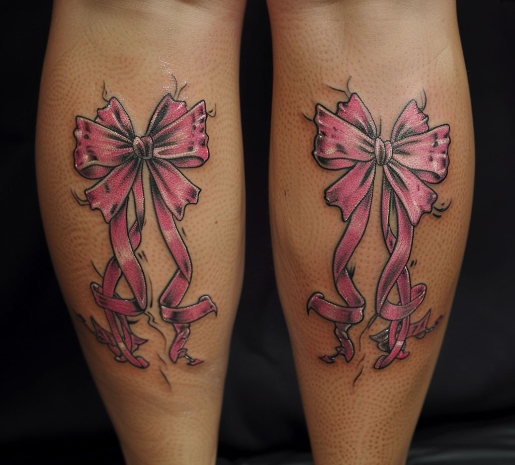 Are you thinking about getting a new tattoo? If you want something cute and a little bit playful, a pink bow tattoo on the back of your legs might be perfect for you.