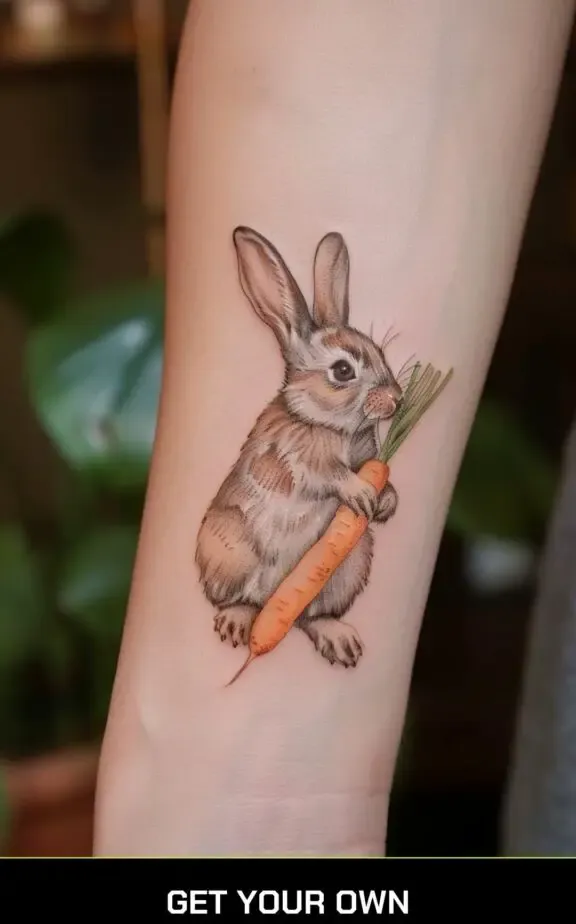 A fun and playful design, a rabbit with a carrot can represent the joy and simplicity of life. This design can be cute and humorous, perfect for those who love quirky tattoos.