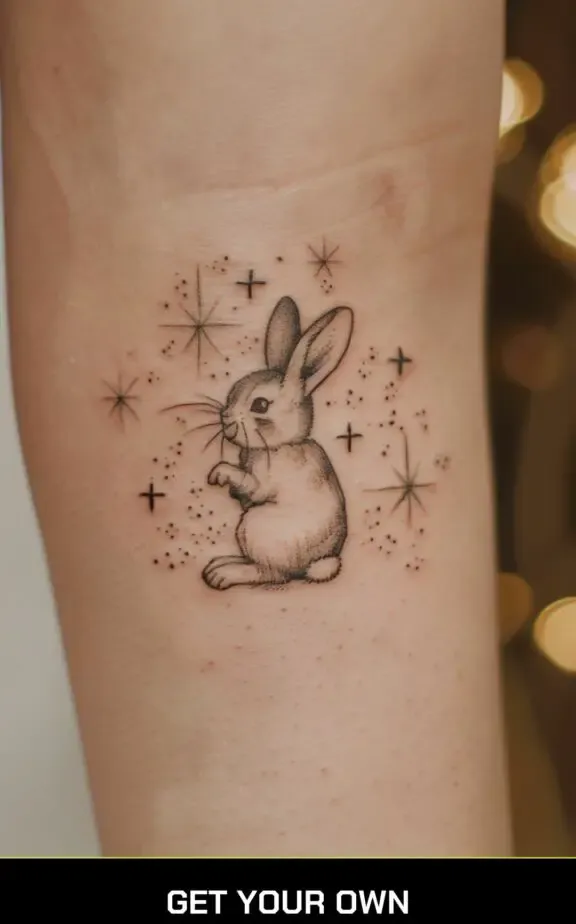 Incorporating stars into a rabbit tattoo can add a celestial and dreamy quality. This design can symbolize hope, aspirations, and the vastness of the universe.
