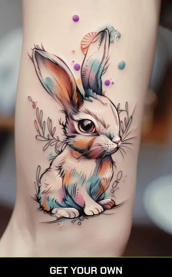 Watercolor tattoos are known for their vibrant and fluid colors. A rabbit in this style can look like a beautiful, painterly artwork on your skin.