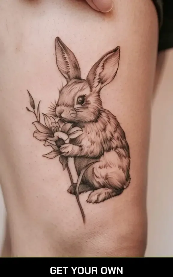 Combining rabbits with floral elements creates a beautiful and feminine design. Flowers like daisies, roses, or cherry blossoms can add a touch of elegance and color to your tattoo.