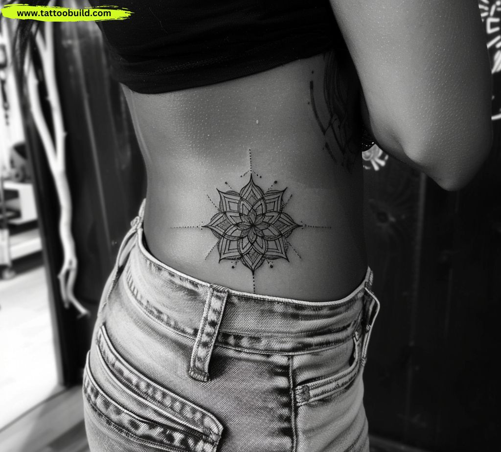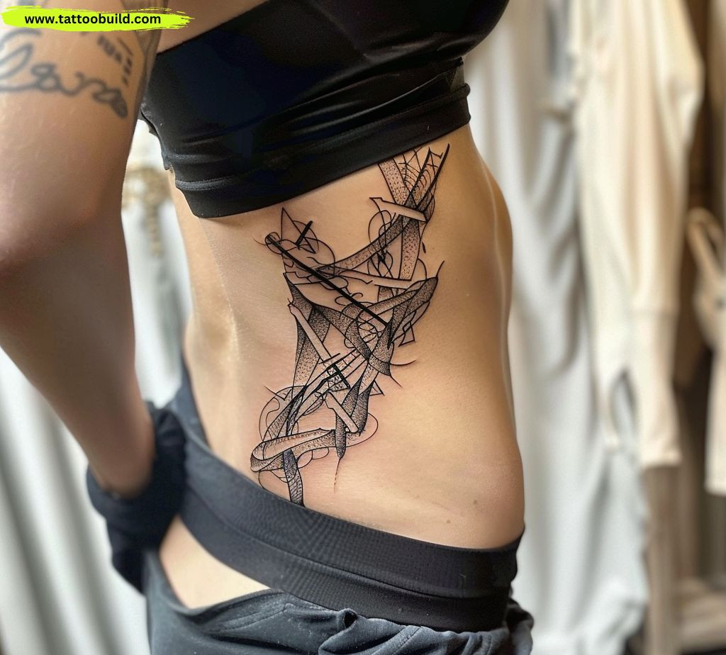 Geometric rib tattoos for women use shapes and patterns to create visually striking designs. These can range from simple and minimalistic to complex and intricate.