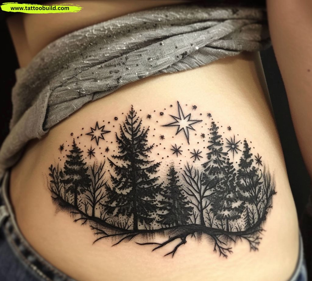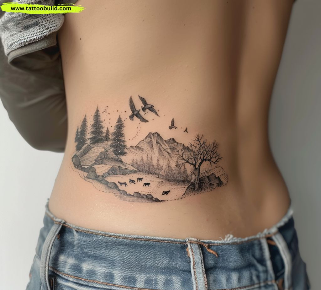 Nature-themed tattoos can be incredibly detailed and beautiful. The ribcage offers a large area to depict intricate scenes from nature.