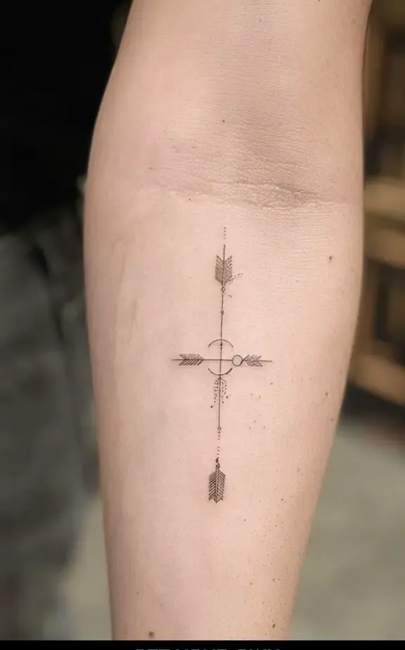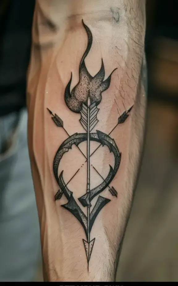 Geometric tattoos are modern and stylish, using clean lines and shapes to create a unique depiction of the archer. This abstract approach can be both artistic and symbolic, suitable for the forearm, thigh, or upper arm.
