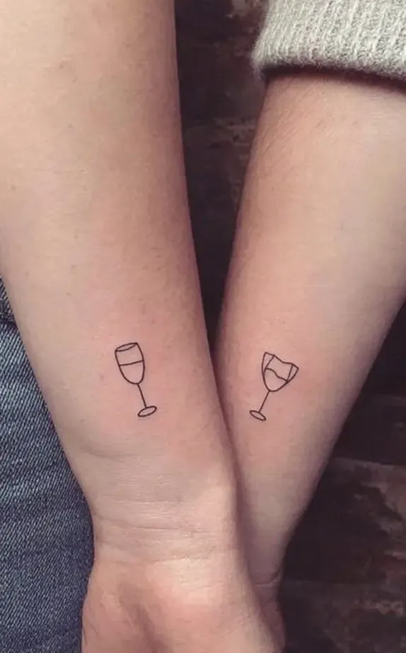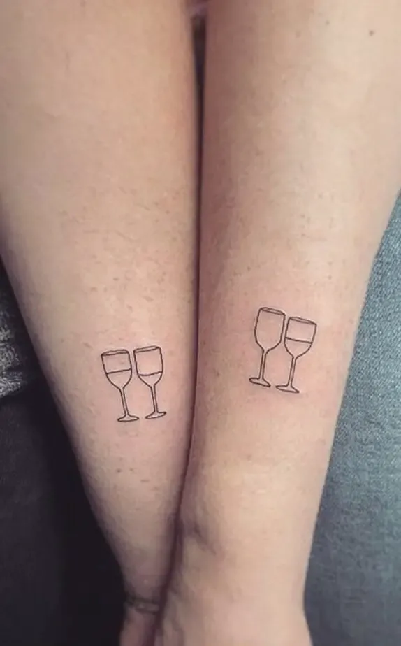 Perfectly suited for those who enjoy a night out or quiet evenings spent chatting over wine, this tattoo is a subtle yet meaningful tribute to a friendship rooted in celebration and connection.