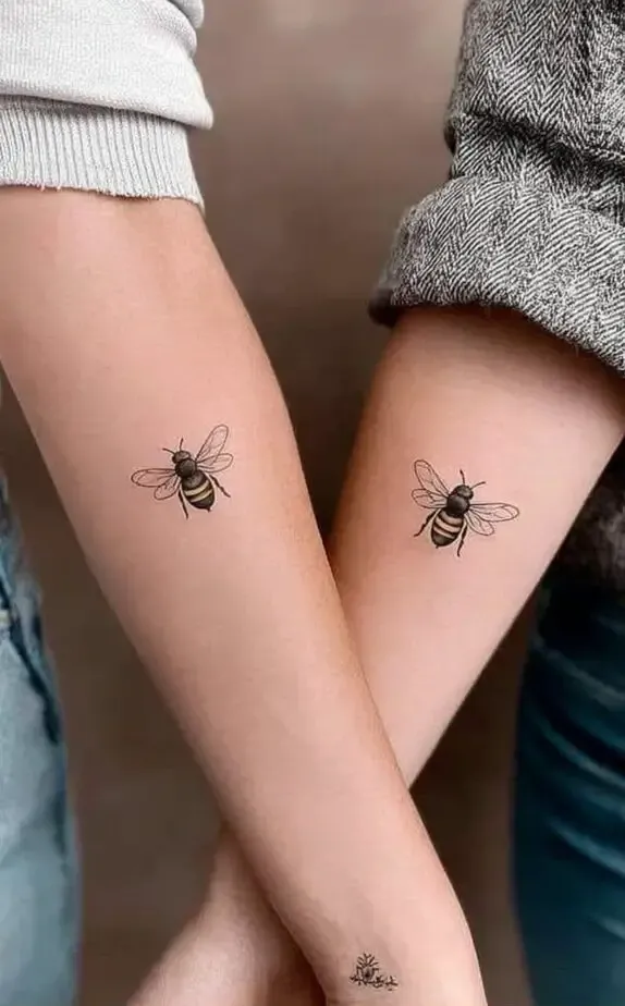 Honey bee tattoos symbolize both hard work and sweetness, making them a meaningful choice for best friends who admire each other s dedication and kindness.