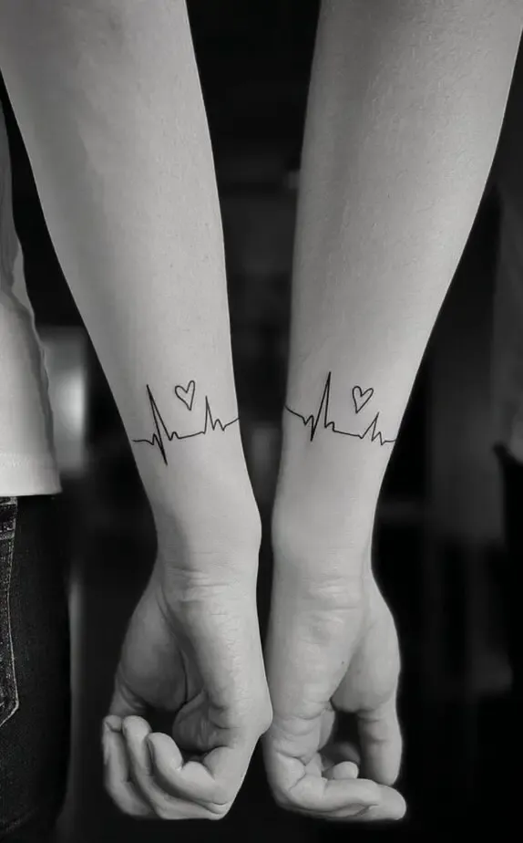 Heartbeat line tattoos are a deeply meaningful choice for best friends who want to symbolize the enduring rhythm of their connection.