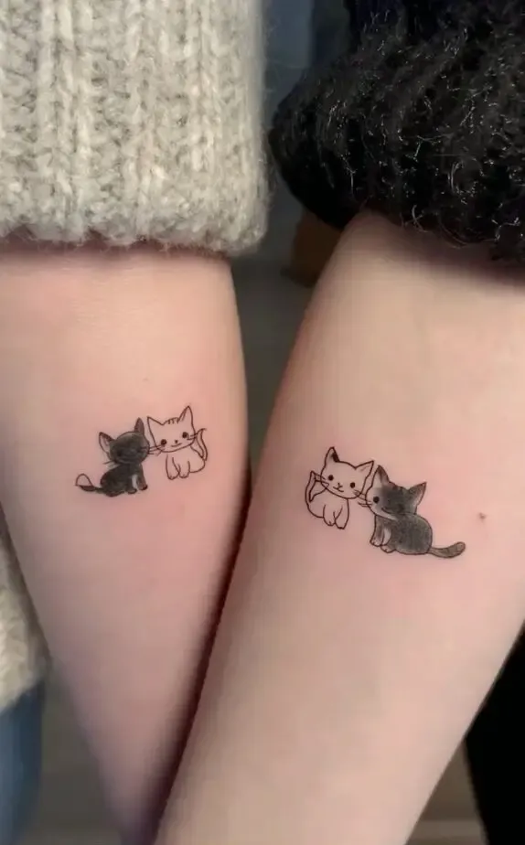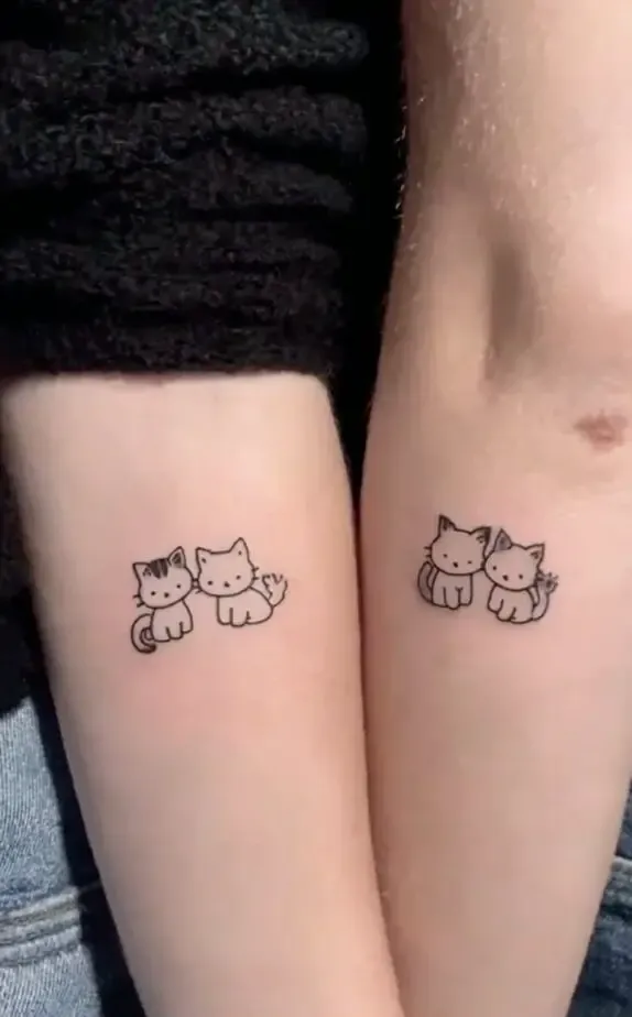 Tiny cat tattoos are an adorable and meaningful choice for best friends who share a mutual love for felines.